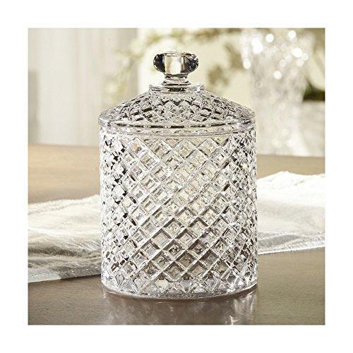 Details: faceted crystal features a classic caro cut design that is perfect in any decor or table setting from contemporary to traditional. The 8-1/4-inch H covered jar is perfect for cookies, candy, keepsalkes, or even soaps, bath salts or potpourri in the bath. Makes a beautiful and memorable gift as well. The classically beautiful Irish Lace, combines two great traditions in Irish handcraft- artisanal crystal and the fine crochet work known as Irish lace - to create a stunning new interpretation of the country's classicheritage Impressive on any shelf or counter, this charming diamond and wedge cut treasure keeps biscuits, cookies and crackers fresh You'll be sweet on its whimsical charm and practicality Enjoy this decorative crystal jar from Le'raze Crystal Collection. So versatile, this tabletop treasure can be used for candies and treats, as well as a perfect piece for the mantel. Wouldn’t this look beautiful sitting on top of your coffee table, filled with delicious candies? It’s sure to be a great conversation piece!