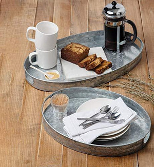 Details: Galvanized Tray - Serving Tray with Cutout Handles - 21"l Oval