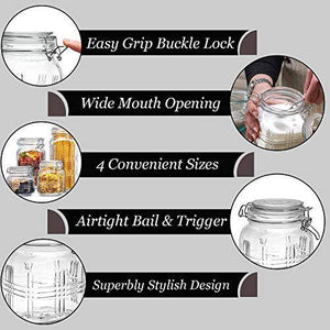 AIRTIGHT GLASS CANISTER SET: Beautiful glass lids include an airtight seal which ensure inside food of the container is safely stored and kept super fresh