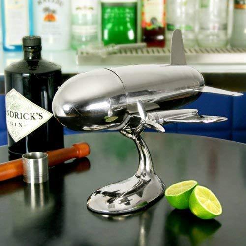 Details: Your adventure is about to begin! while you're flying high, make sure you're commemorating all of life's memorable moments with ler’aze beautifully detailed airplane cocktail shaker, featuring a nickel plated finish and charming airplane design. Hurry, before this cocktail shaker flies away for good! mix drinks at your party with a magnificent shaker on a stand. This shaker features a silver finish and spinning propellers to complement your bar setting. Can be left out on display and used daily as well. Tight seal prevents liquids from seeping out and the smooth finish makes it very easy to clean. The cleaning after use is quick and easy, just rinse the shaker under water. This stunning nickel plated airplane cocktail shaker is a tribute to great airplanes of yes-tardy past. Aviation enthusiasts and collectors alike will savor the fine craftsmanship and practicality this piece offers. Winged base holds shaker when not in use our aviation inspired piece is crafted by master craftsmen, each piece testifies to a unique, and personable character of its own. Our gift givers understand our stock is limited to quantity, never to quality. Each piece speaks its own, crafted to the tune of our passion and roaring airplane engines alike! dimensions 10. 5"l x 12"w x 5"t; 24 oz capacity. Shakes easily and strains with a built-in strainer. Recommended and used by the aviation and drink enthusiast because of its thoughtful design and careful craftsmanship. Are you searching for a unique gift for the aviation enthusiast in your life? - look no further.