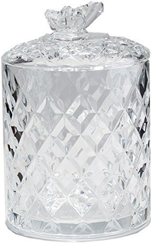 • The handle of the lid is shaped like a delicate butterfly, An elegant addition to your powder room or parlour, this textured glass jar showcases a quilted design .