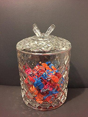 Details: faceted crystal features a classic caro cut design that is perfect in any decor or table setting from contemporary to traditional. The 8-1/4-inch H covered jar is perfect for cookies, candy, keepsalkes, or even soaps, bath salts or potpourri in the bath. Makes a beautiful and memorable gift as well. The classically beautiful Irish Lace, combines two great traditions in Irish handcraft- artisanal crystal and the fine crochet work known as Irish lace - to create a stunning new interpretation of the country's classicheritage Impressive on any shelf or counter, this charming diamond and wedge cut treasure keeps biscuits, cookies and crackers fresh You'll be sweet on its whimsical charm and practicality Enjoy this decorative crystal jar from Le'raze Crystal Collection. So versatile, this tabletop treasure can be used for candies and treats, as well as a perfect piece for the mantel. Wouldn’t this look beautiful sitting on top of your coffee table, filled with delicious candies? It’s sure to be a great conversation piece!