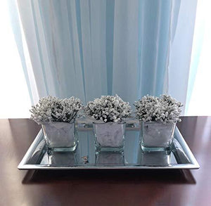 Le'raze Elegant Mirrored Rectangular Silver Tray, Mirrored Tray for Whiskey Decanter, Candle Sticks, Vanity Set, Perfume Tray, and Serving