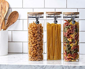 Set of 3 Tall Canisters, Glass Kitchen Canister with Airtight Bamboo Clamp Lid, Glass Storage Jars for Kitchen, Bathroom and Pantry Organization